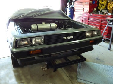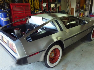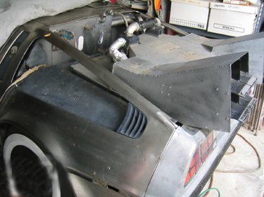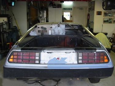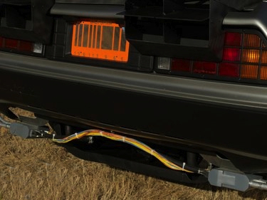 The hood box that was on this car during filming is now attached to the DeLorean shell hanging from the ceiling at Planet Hollywood in Hawaii. In order to present the car as it was during the movie, we acquired an accurate replica of the hood box. Several LED light clusters were installed within the hood box.
