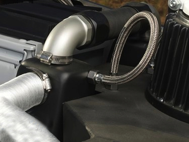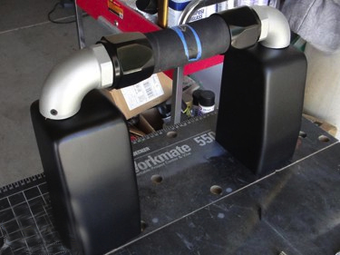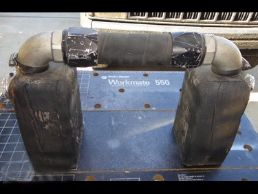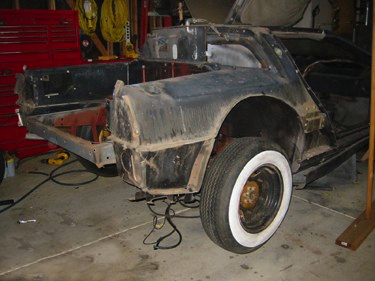 Immediately behind the deck lid were two black wood towers with a cross tube mounted on top. These original pieces were restored and reinstalled. The thin aluminum heater ducting was replaced with new sections.