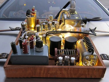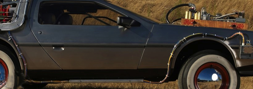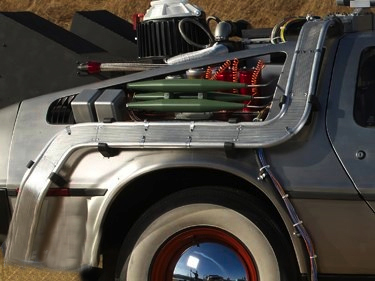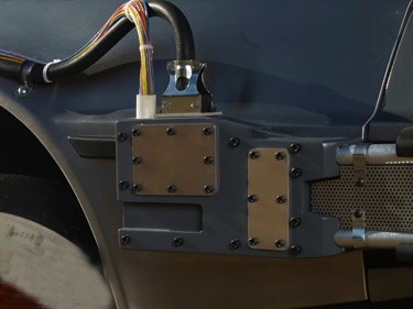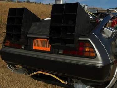 Over the years sitting abandoned on the backlot at Universal Studios, many of the props on the outside of the car were removed or stolen. The remaining pieces were restored, and items that no longer existed were recreated. The flux boxes on the front fenders were still on the car and they were made from resin on top of wood. The resin had large cracks in it, and the wood on the inside was rotting. We decided to mold them and recreate new ones for the car, keeping the original flux boxes stored for posterity. In addition, the flux boxes on the roof and under the rear bumper were missing, so they were recreated along with the wormhole emitter on the roof.