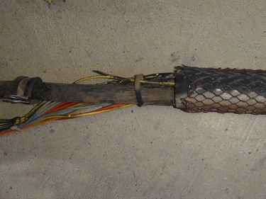 All of the colored wires and thick black rubber cable around the front fenders, under the doors, and up into the rear deck were still in place on the car. However, due to the extensive exposure to weather, the colored wires were very brittle and most of the color has faded. We have kept all of the original colored wire aside. We were able to find the exact same brand, size, and colors of the wires. The new replacement wires were installed with the exact same number of wires for each color. The thick rubber black cable was in very good condition, so it was cleaned and reinstalled. Under each door is an aluminum tube with a piece of mesh attached. Both of these were incorrectly covered in black spray paint like everything else, so they were removed, refinished, and reinstalled.